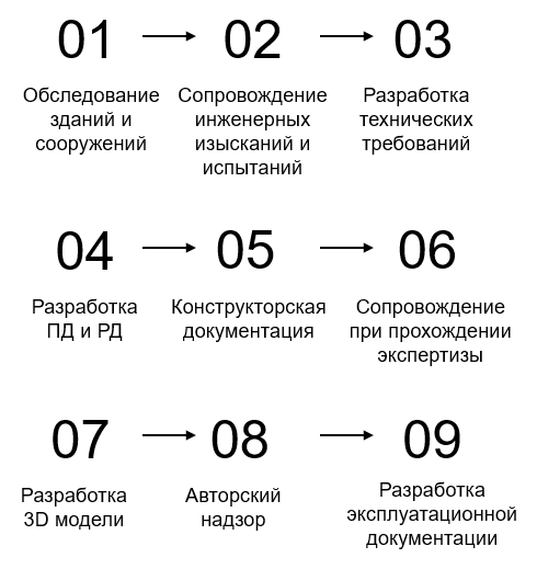 - разработка проектной документации в соответствии с Постановлением № 87 «О составе разделов проектной документации и требованиях к их содержанию»